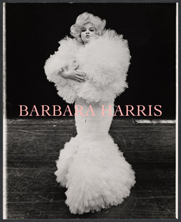 Elfin-face. Doll face. Curtain of bangs. Bambi-eyes. Button-nose. Cherub cheeks that cry out for pinching. To the bewilderment of many, she exuded a womanly intuitiveness, an adolescent awkwardness, and the innocence of a baby, which made the “real” Barbara Harris ever more mysterious. “She might be descended from the elves, or perhaps before coming to New York she lived under a bridge with her uncles, the trolls, or in a forest pool.” People could tell something was going on but these were the 60s. Her fluidness was discernable, her personality offstage became perplexing. Her look and style didn’t always make sense, so unglamorous, even, but she seemed to possess almost a supernatural gift.